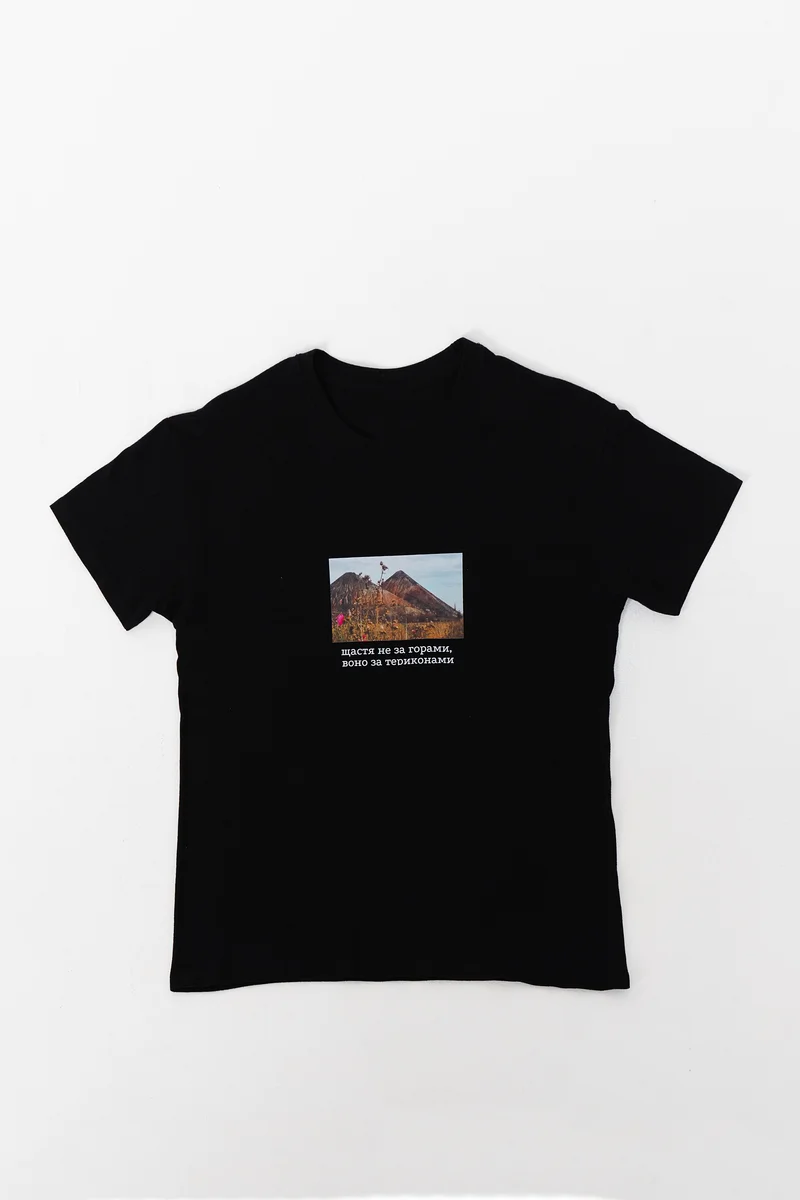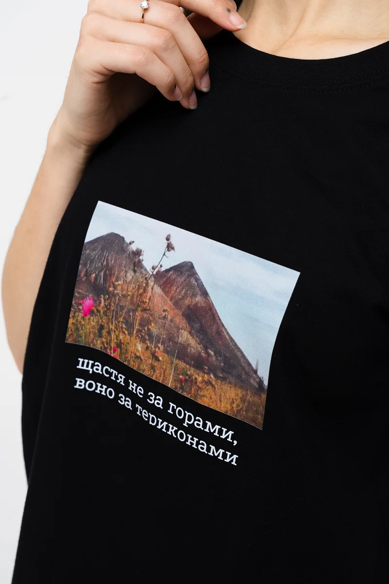 Кольори: Чорний, Білий Розміри: S,M,L,XL,XXL Терикони – давно не просто індустріальні пагорби, це сліди праці, культури та боротьби Донбасу, які видно навіть із космосу. Вони мовчки тримають те, що не вміщають слова. Те, що проходила ця земля – і люди на ній. Біль, що відлунює каменем. Радість, що була втомленою. Надія, закладена між шарами породи. Стоять, наче спини тих, хто не схилився.